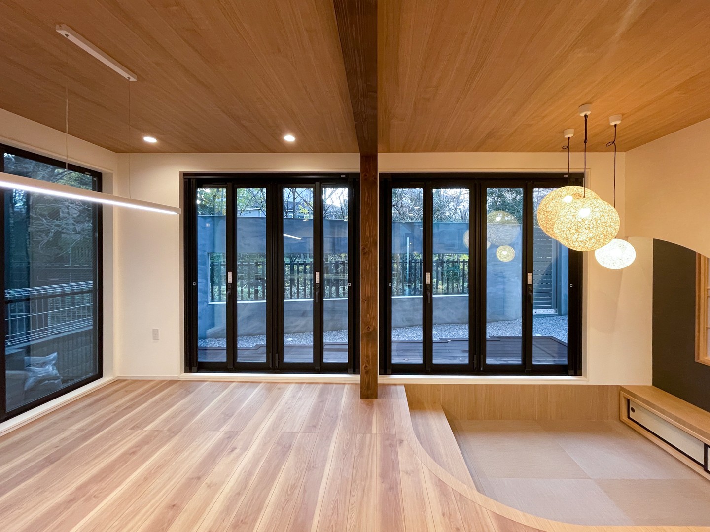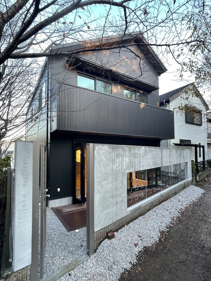 2022年11月竣工した注文住宅です。自然豊かたな玉川上水の沿いにある敷地で、基本設計から竣工するまで1年半間かかりました。